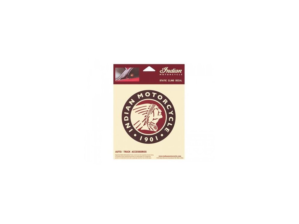 Obojstranná nálepka v klasickom štýle, ideálna na sklo vášho vozidla. Z jednej strany ju zdobí hlava Indian, zo strany druhej potom nápis Indian Motorcycles. Rozmery 11x11cm.