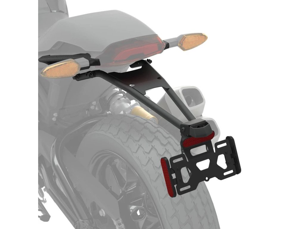 Premiestnite svoju poznávaciu značku pod sedadlo pomocou tohto vysokého držiaka na poznávaciu značku, ktorý dodá vášmu FTR čistý a športový štýl. Táto súprava obsahuje všetko, čo potrebujete na namontovanie držiaka základného plechu na miesto pod sedadlom, a tiež obsahuje hliníkové držadlá, na ktoré sa dajú namontovať zadné smerovky. Vyžaduje sa montážna súprava príslušenstva (predáva sa samostatne). Pre dodatočný vlastný štýl nainštalujte súpravu jasných smerových svetiel (predávajú sa samostatne).