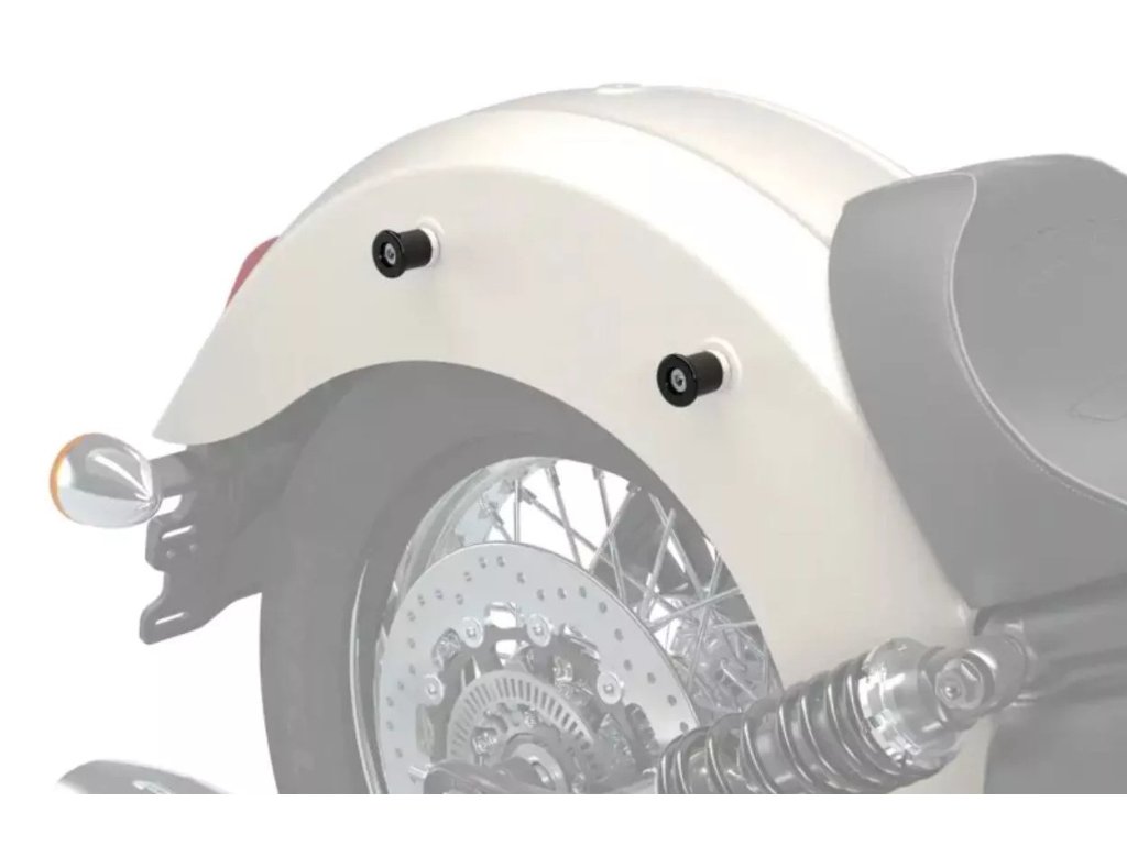 - Doplnky, ako sú podsedlové brašne z pravej kože alebo rýchloupínacia opierka pre spolujazdca (každé sa predáva samostatne), je možné pripevniť k montážnym cievkam bez potreby použitia náradia