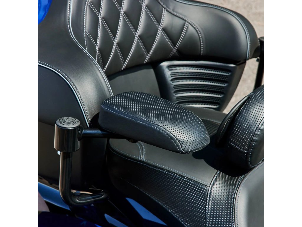 Cestujúci jazdiaci na motocykli Indian Motorcycle® vybavenom kufrom si s touto súpravou na podporu lakťovej opierky kufra vychutná jazdu v maximálnom pohodlí.