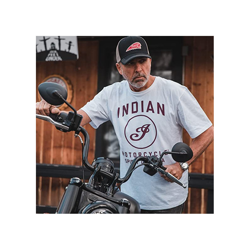 Štýlové tričko Indian. Vpredu veľké tlačené grafické písmo „I“ a logo Indian Motorcycle v tvare bloku Malé logo blokového typu na zadnej strane Zosilnený páskový golier s dodatočnou značkou Moderný strih je pohodlný s priliehavými rukávmi a ramenami