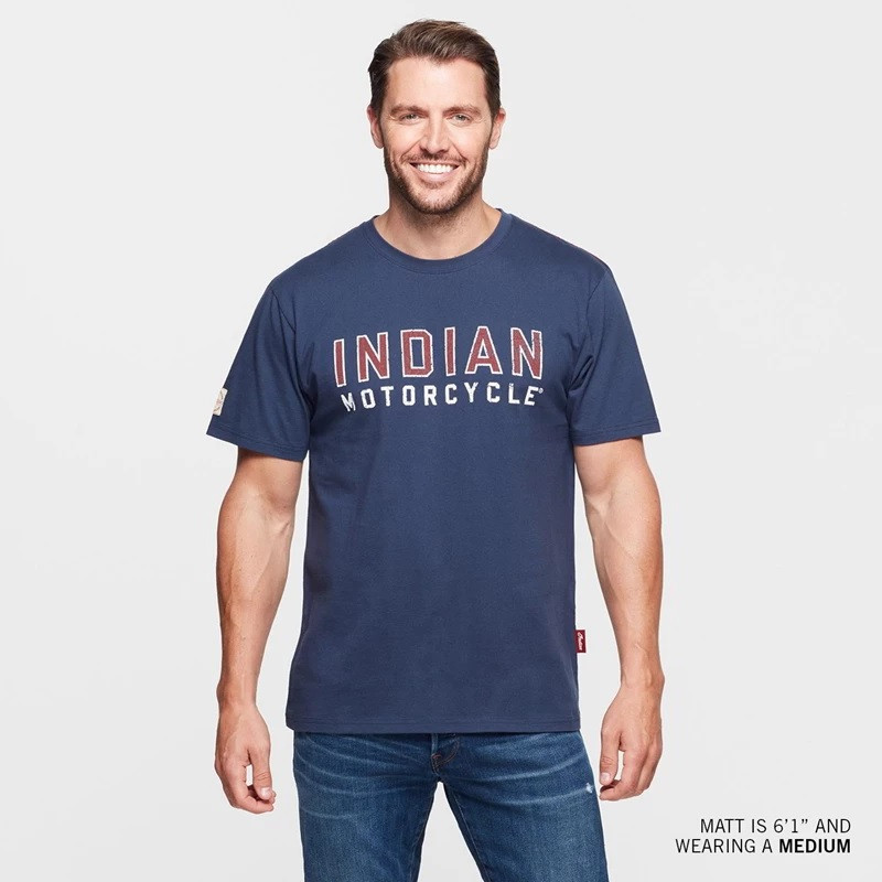Malé tlačené logo Indian Motorcycle na hrudi a tlačené logo v tvare bloku na chrbte