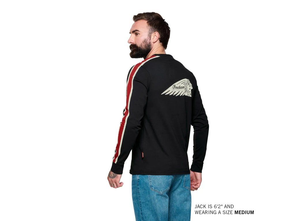 Veľká grafika na chrbte s retro štýlovou pin-up girl a veľkým logom Indian Motorcycle® na prednej časti hrudníka a rukávmi v kontrastnej farbe pre pridaný štýl.