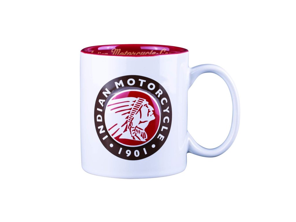 Pekná a praktická keramická šálka v bielej farbe s logom Indian motorcycle.