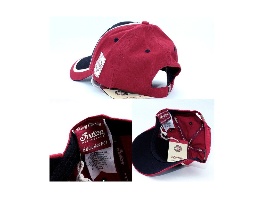 Červená šiltovka má čiernu farbu na prednom paneli a bankovku s bielym lemovaním