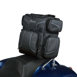 • Prémiové vybavenie a detaily pripravené na jazdu: Zipsy YKK®, značkové úchytky a pevné rukoväte na prenášanie poskytujú spoľahlivú funkciu s charakteristickým štýlom Indian Motorcycle. Súčasťou je ramenný popruh na prenášanie mimo motocykla, pripevnený značkový pláštenka a kompatibilita s opierkou chrbta.