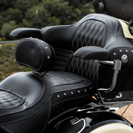 • Pohodlie pri dlhej jazde: Podložky na lakťové opierky pre spolujazdcov Indian Motorcycle poskytujú spolujazdcovi pohodlné a polstrované sedadlá, na ktorých si môže oprieť ruky, a zaistiť tak vynikajúce pohodlie pri každej jazde.
