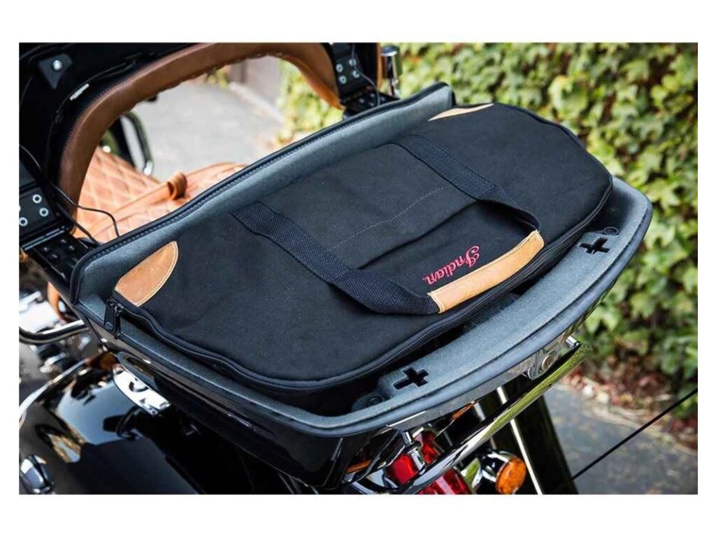 Taška má kožené držadlá, celozapínanie na zips, vonkajšie štrbinové vrecko a vnútorné štrbinové vrecko. Navyše obsahuje logo Indian Motorcycle® vyšívané červenou niťou.
