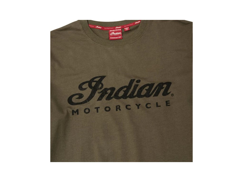 Vpredu veľké tlačené logo Indian Motorcycle