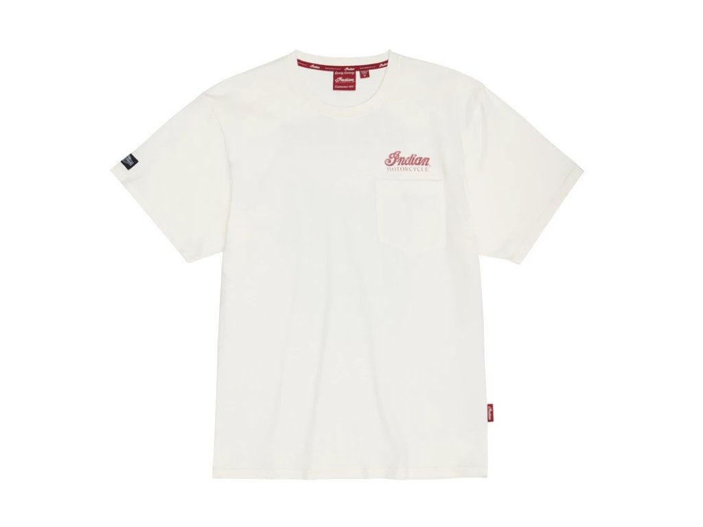 Veľká grafika na chrbte s retro štýlovou pin-up girl a veľkým logom Indian Motorcycle® na prednej časti hrudníka a rukávmi v kontrastnej farbe pre pridaný štýl. 100% bavlna