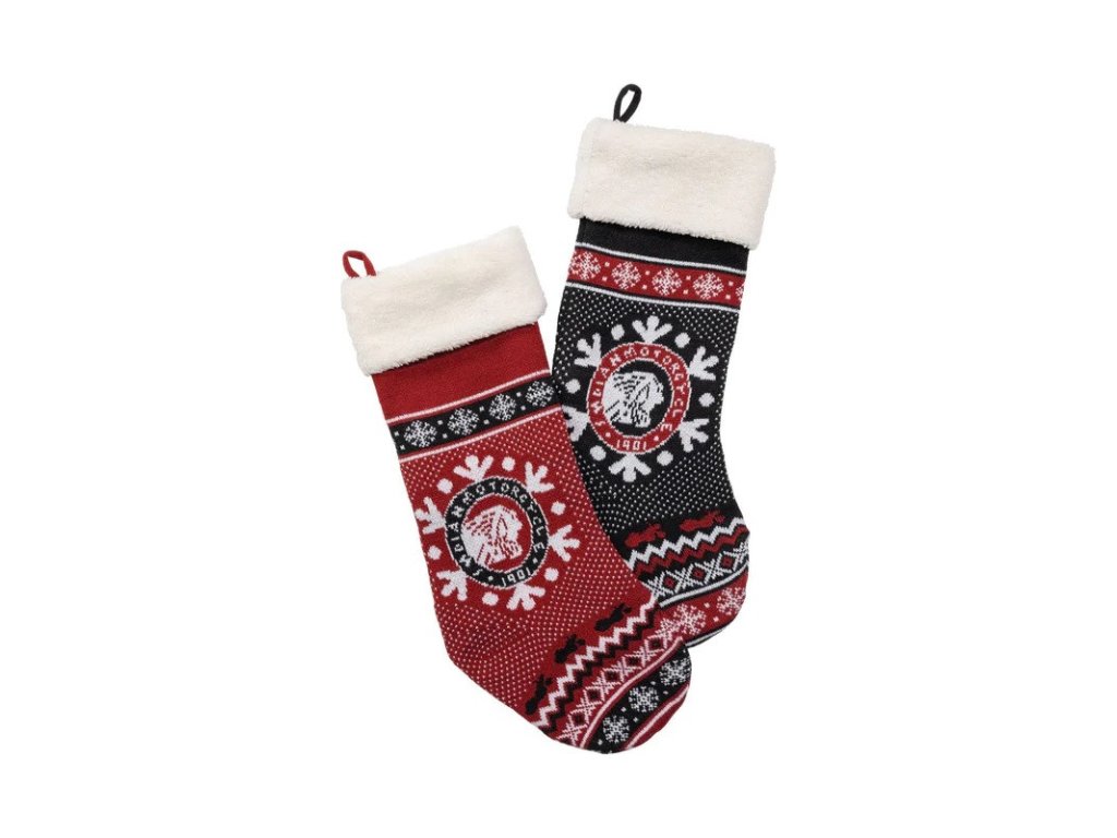 • Vzor zobrazujúci snehové vločky, motorky, cikcaky a bodky v typických čiernych a červených farbách Indian Motorcycle
